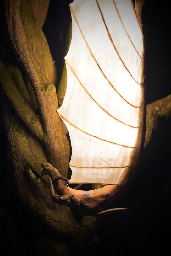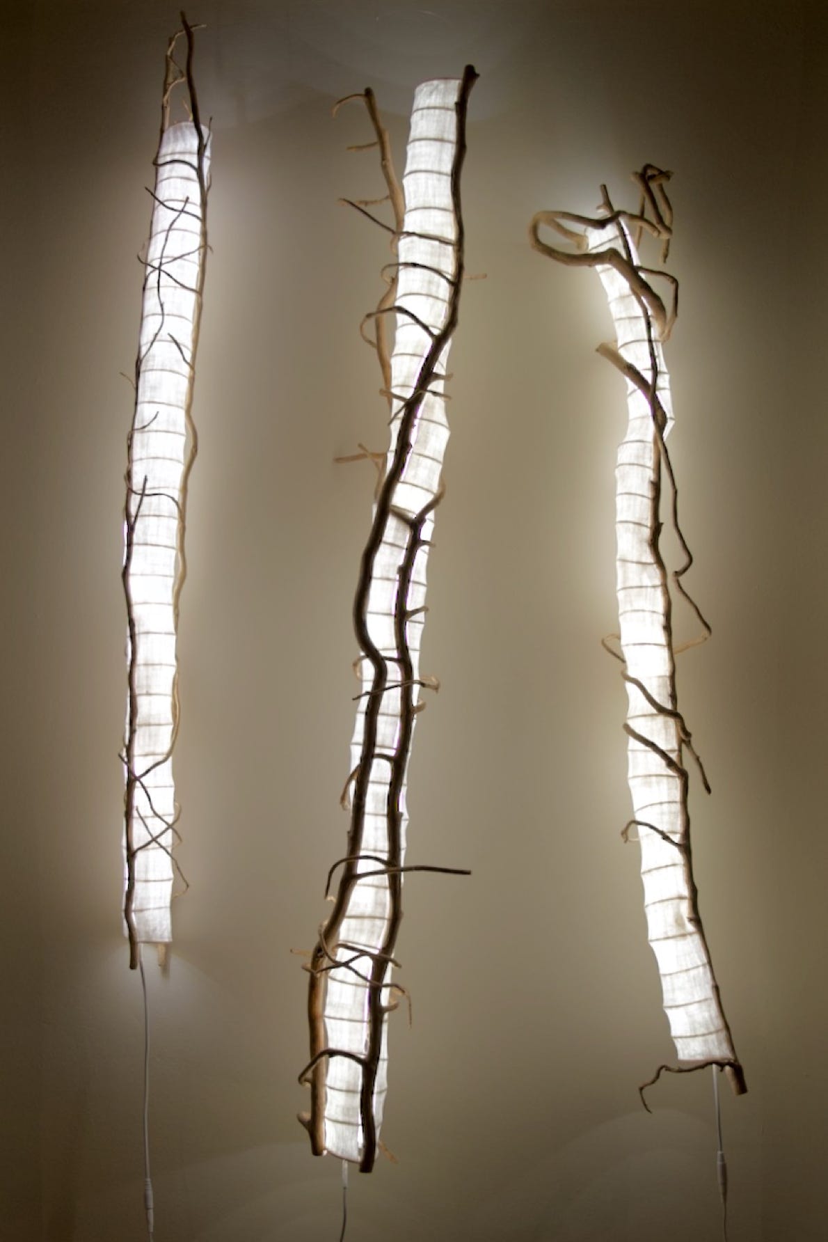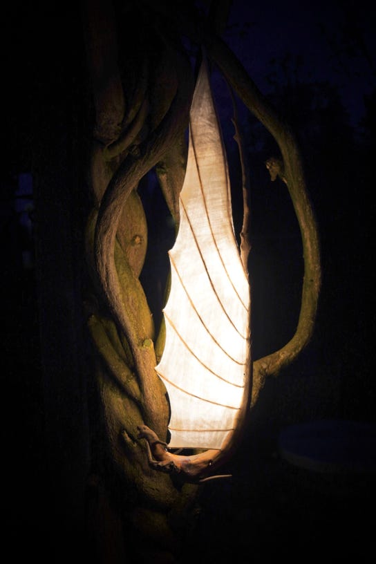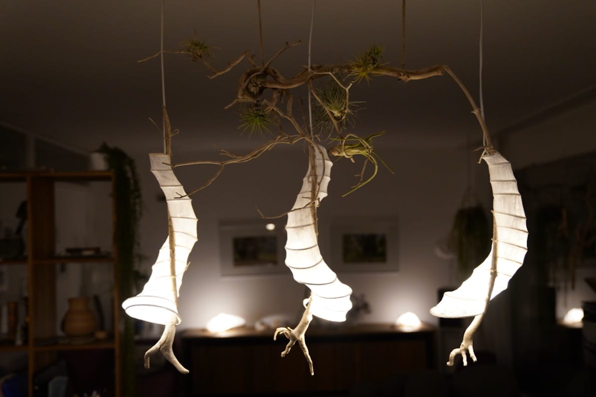 Im fertigen Skelett befestige ich Fassungen für LED-Leuchten oder LED-Streifen und verlöte sie mit einem Kabel, das wiederum mit einem Trafo verbunden wird. Die LED-Leuchtmittel erzeugen ein sanftes, warmweisses Licht und bringen die Skulpturen subtil zum Strahlen.
